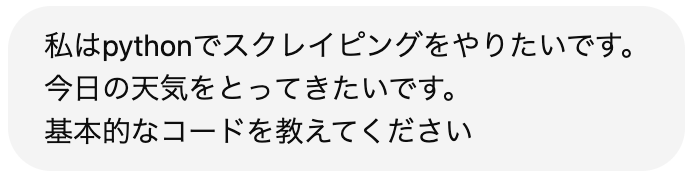 私は慣れているのでPythonでやることにして、スクレイピング部分をChatGPTにお願いして書いてもらった。