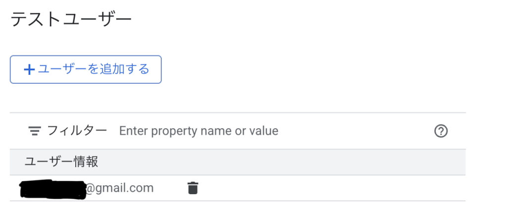 これもChatGPTに依頼したけどうまく動かなかった、いろいろ調べるとGoogleに認証されているプロジェクトでなかったらGoogle Cloud Console上からテストユーザーとして登録する必要があるっぽい。